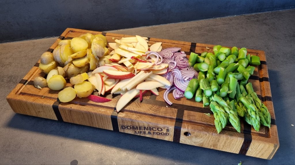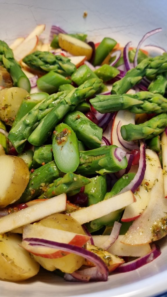 Hier etwas was zur aktuellen Saison sehr gut passt und unser heißer Favorit für jede Gartenparty ist. Wir essen sehr gerne Spargel und in einem Salat mit Äpfeln, roten Zwiebeln und Granatapfelkernen als Topping ist die Kreation hier eine richtige Geschmacksbombe.