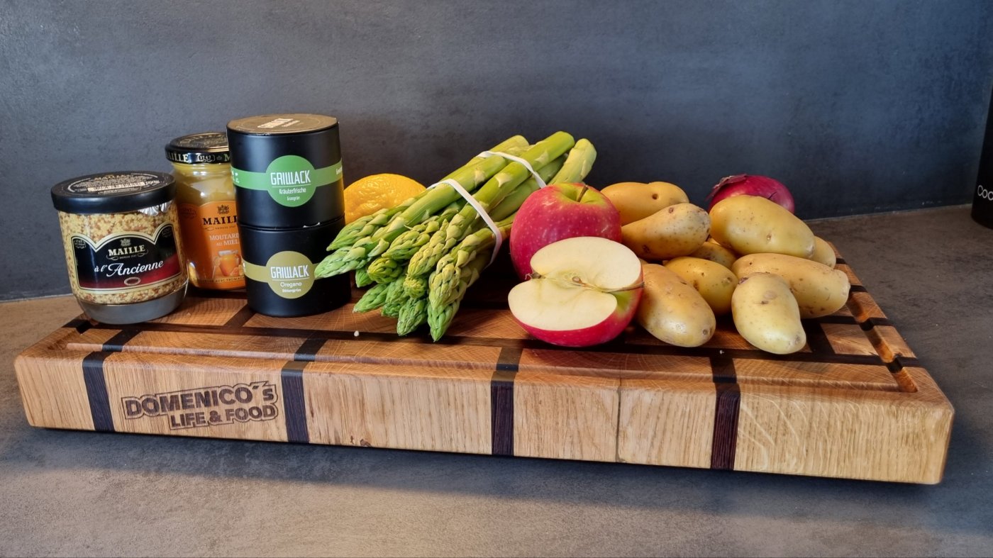 Hier etwas was zur aktuellen Saison sehr gut passt und unser heißer Favorit für jede Gartenparty ist. Wir essen sehr gerne Spargel und in einem Salat mit Äpfeln, roten Zwiebeln und Granatapfelkernen als Topping ist die Kreation hier eine richtige Geschmacksbombe.
