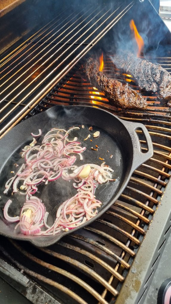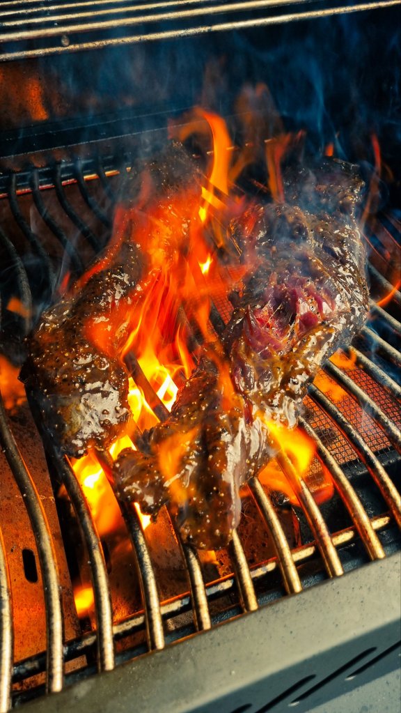 Der Grill wird ordentlich aufgeheitzt und das Onglet bekommt von allen Seiten ein paar schöne Röstaromen verpasst.