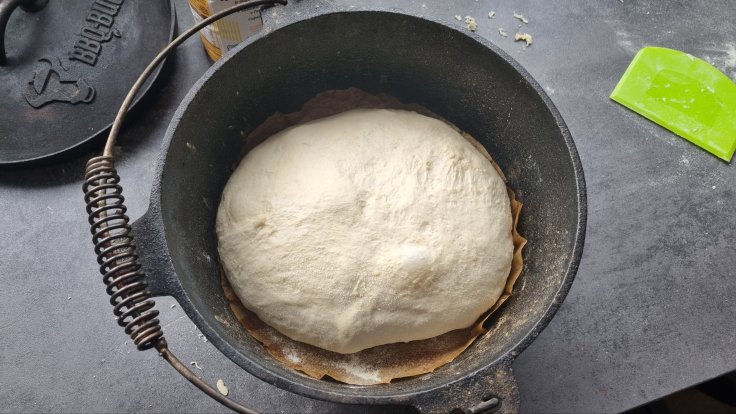 Danach habe ich den Teig wieder gefaltet und in den Dutch Oven gelegt.